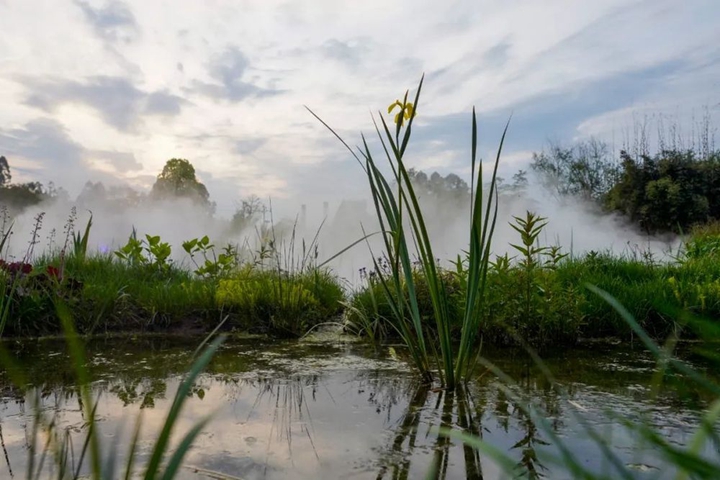 重庆市梁平区双桂湖畔三峡竹博园内的小微湿地景观 新华社记者刘潺摄