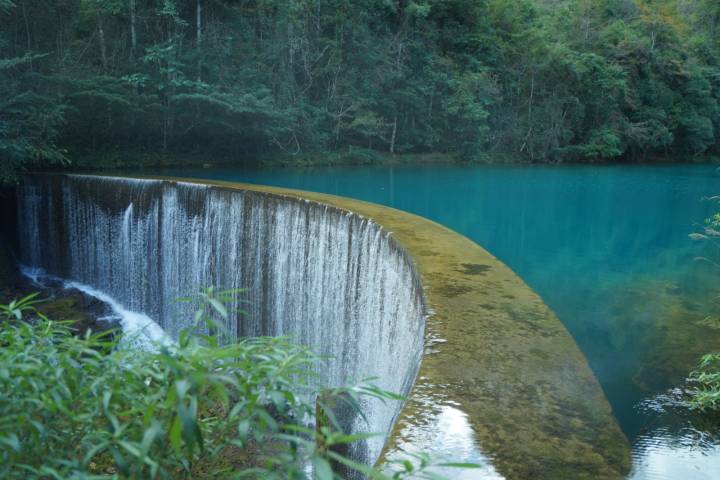 小七孔景区涵碧潭上游长1.6公里的狭窄山谷里,沿高高低低的河床,错落着68级跌水瀑布。专家们考证,如此众多而密集的瀑布、跌水,实属全国罕见。68级跌水瀑布层层叠叠,淙淙哗哗倾泻而下,或倾珠撒玉,推雪拥云,或如匹练飘逸,似银河泻地,形态各异,气象万千。千姿百态的瀑布跌水竞领风骚,争奇斗妍,构成风情万种的动态水景,令游客目不暇接。