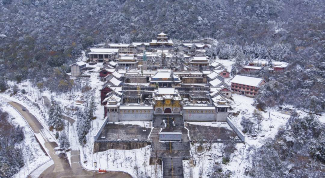 白雪皑皑下,国家4A级旅游景区灵山寺银装素裹。图片来源:姚远