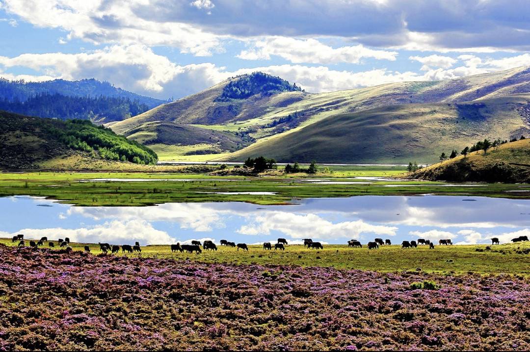 木里长海水流清澈,牛羊肥美。邹森摄影