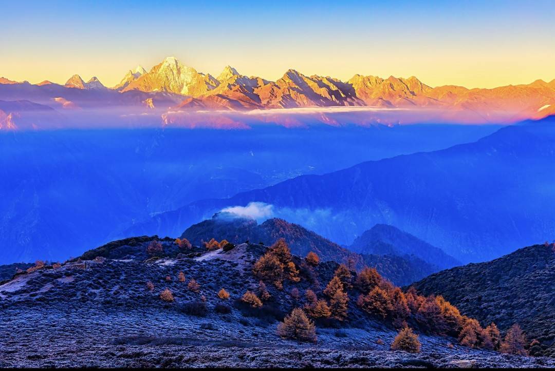 作为大凉山北部的第一高峰,阳糯雪山海拔4791米,山顶终年积雪,山中有较为完整的古冰川遗迹。白雪皑皑下,晨曦微光洒向山顶,美不胜收。图片提供:余寒