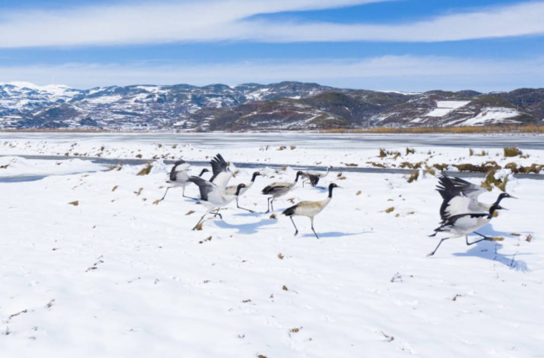 每到冬天,乐安湿地就会成为黑颈鹤的乐园,成千上万的黑颈鹤在这里驻留休息。吉斯小鹰供图