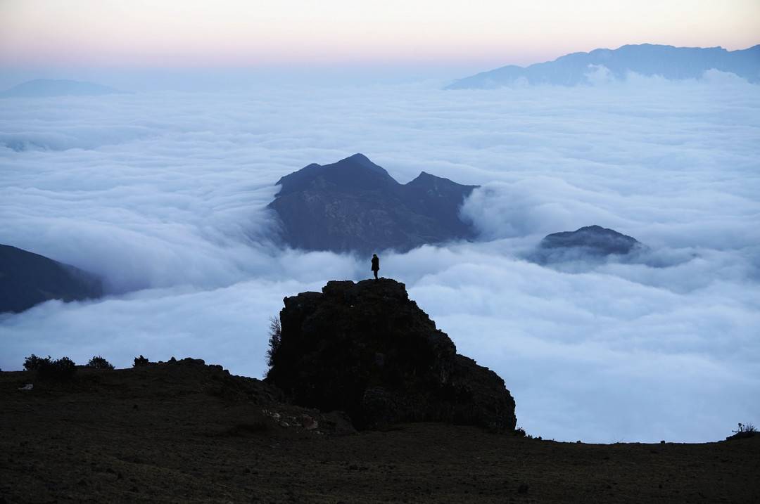云雾深处,当人站在高处眺望远方,山、人、云合为一体,成为绝美的合影。杨勇摄