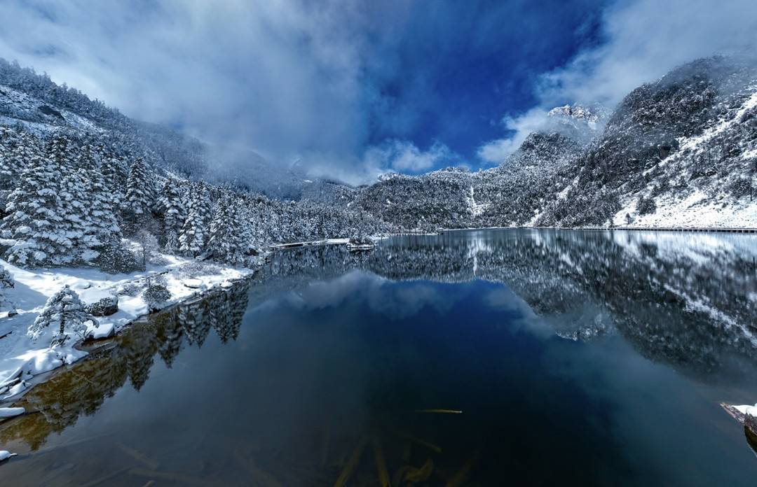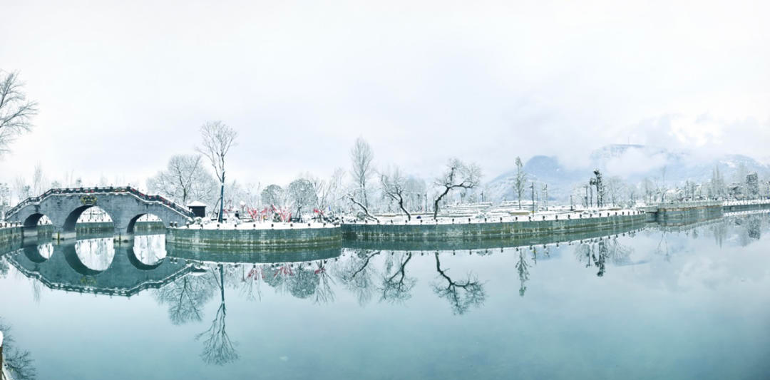 冬季的观音桥,白雪皑皑下,湖面倒映出岸上的树影。图片提供:余寒