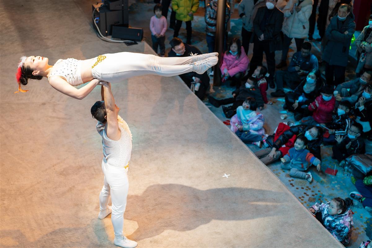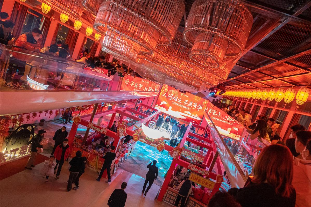 在一楼市集区,聚集了雕花剪纸、手工糖人、汉绣、书画、鲁班锁、漆器等非遗艺人,现场进行手工制作和文化表演。新鲜玩法解锁新春仪式感,沉浸其中,穿越古今。