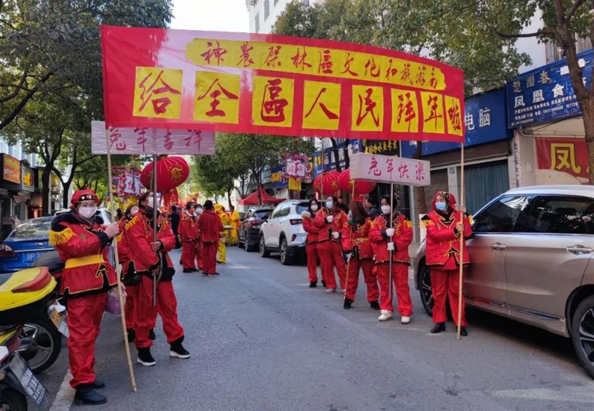 为弘扬传统文化,营造节日氛围,春节前夕,神农架林区举办“启航新征程 幸福中国年”2023“村晚”示范展示活动,节目赢得观众的阵阵掌声。林区还在松柏镇白莲村等地开展送春联、猜灯谜等活动,邀请省级非遗传承人及区级传承人现场进行“堂坊叠绣”及“剪纸”展示。