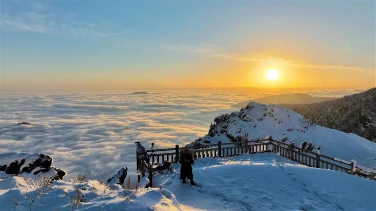莽莽雪峰气势磅礴,森林雾凇晶莹剔透,山川大地白雪皑皑,神农架雪韵胜景,犹如一幅幅美丽画卷。尤其是冰雪飞舞的神农顶景区,雾凇高挂冷杉枝头,在阳光下晶莹剔透。云海翻涌间,皑皑白雪似笼罩了一层神秘面纱,游客直呼“人间仙境!”