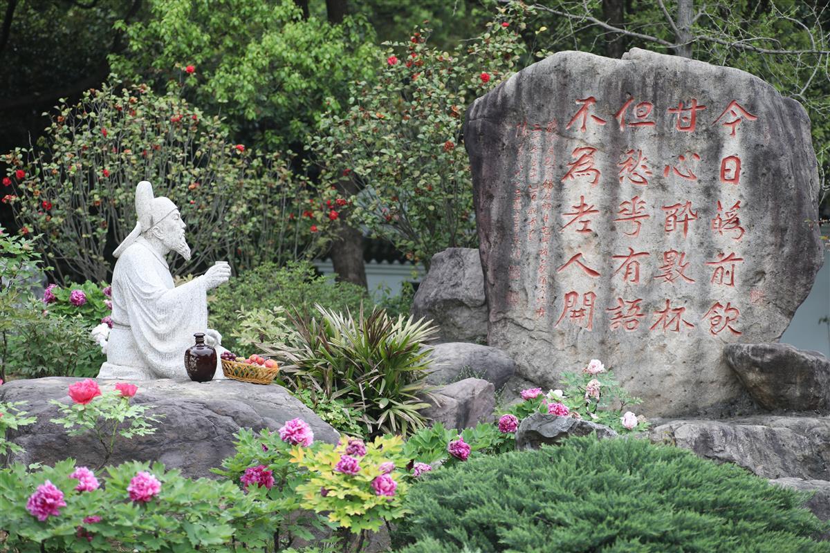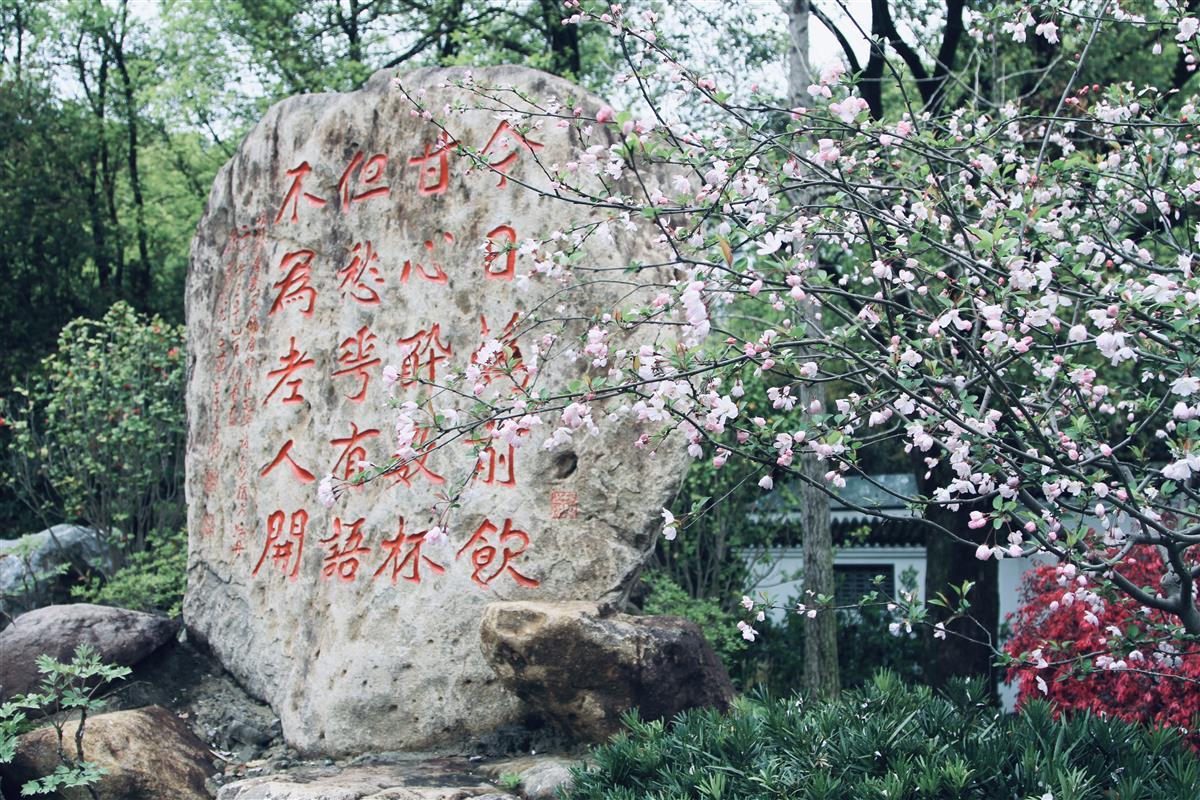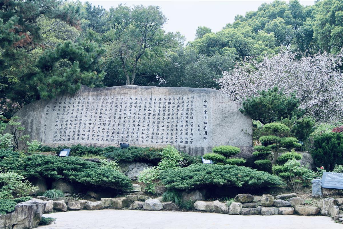 镌刻“南国独享”“国色天香”的石碑高大而瞩目,生动地讲述着牡丹的故事;湘云醉卧花丛、刘禹锡饮酒赏花,感受古人对牡丹诉不尽的情谊;钩桥与牡丹花溪则联起园内的诗意与景色,美轮美奂;牡丹文化浮雕墙展示旨为纪念与感谢多年来为东湖牡丹园辛勤付出的研究建设工作者们。同时园内小道曲径通幽,假山玲珑生巧,木质步道深邃幽长,还有点缀其间的名家摩崖石刻、楹联石碑更是精彩纷呈,使得这里仿若一座满载牡丹历史与文化的博物馆。