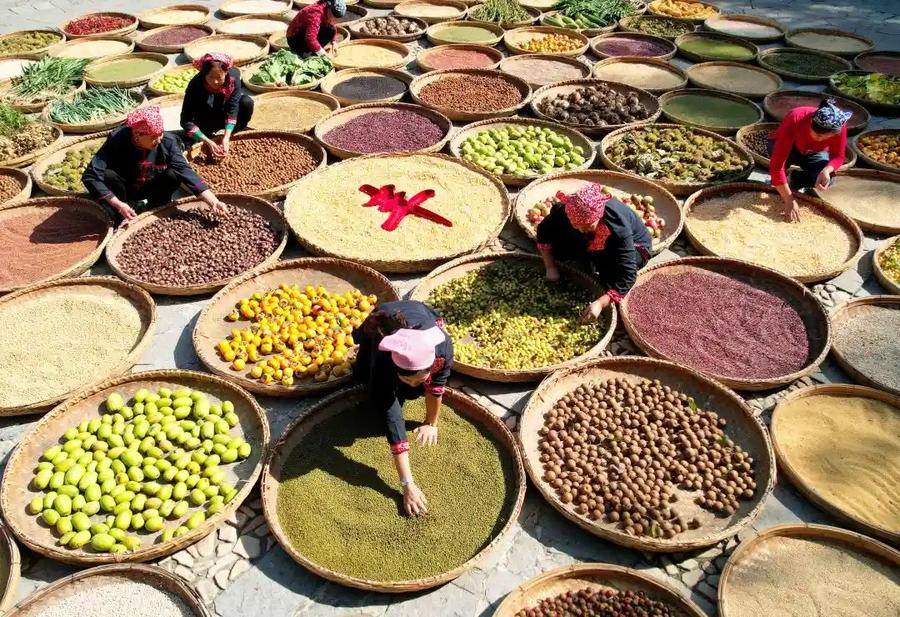 竹泉村·红石寨景区从秋分开始,竹泉村的村民用编织的竹筛把玉米、高粱、辣椒等五颜六色的农作物在村内广场、村道上和房前屋后进行晾晒或悬挂,与翠绿竹林、淙淙泉水、原生态村落构成一道道美丽的“晒秋”图画,吸引游客纷至沓来。