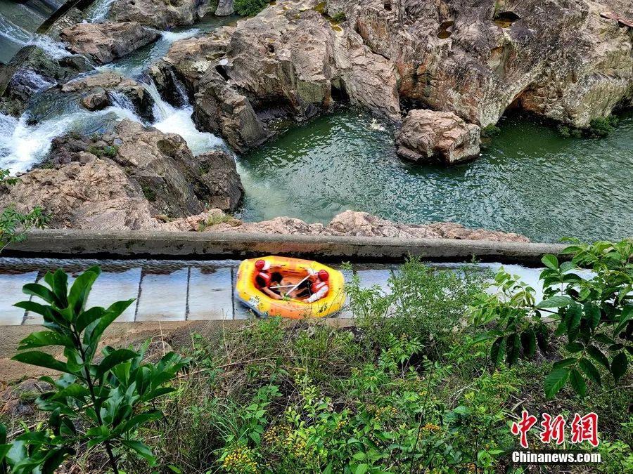 峡谷漂流、雨林探秘是五指山旅游的核心吸引力。图为五指山红峡谷景区,游客乘坐皮划艇沿河道下滑。王晓斌摄