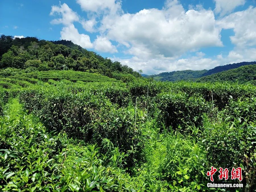在五指山水满乡,一座座茶园镶嵌在热带雨林之中。图为水满乡的椰仙观光茶园。王晓斌摄