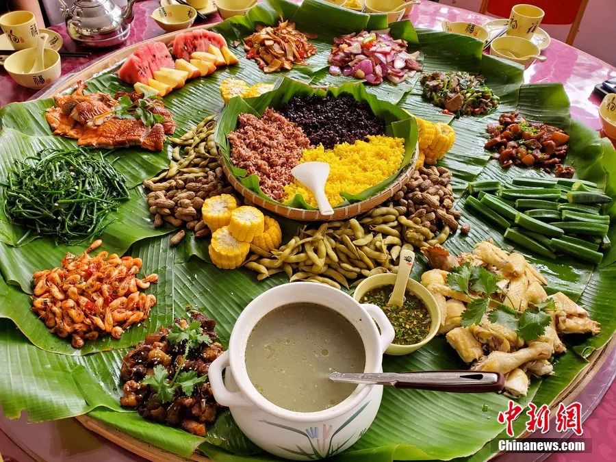 用芭蕉叶盛放的五指山各色美食王晓斌摄