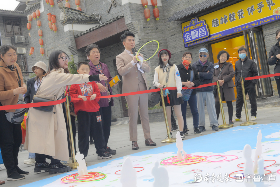 现场拍照的游客络绎不绝,纷纷争当“八仙”!除了拍照打卡区,“仙境海岸‘桂’客盈门”烟台市文化旅游桂林公众推介会现场还设置了城市推广区、游戏互动区、烟台手造区、仙境美食区、资讯服务区等区域。