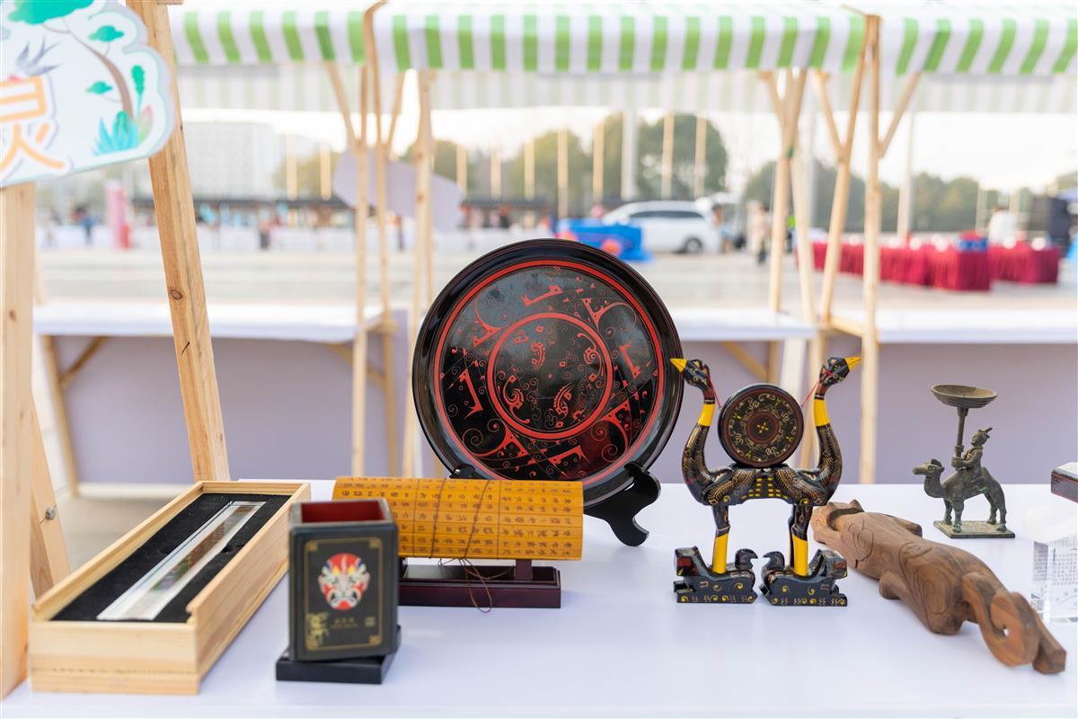 活动现场推出潮玩文创、多彩非遗、书香花海等系列文化惠民活动。荆门市博物馆、屈陶屈窑、探梦科技等10余家文创机构展出楚简书画扇、战国楚人迎宾图、石鼓油纸伞等文创产品2000余件,推出消费季限时特惠,前来参观打卡的市民络绎不绝。