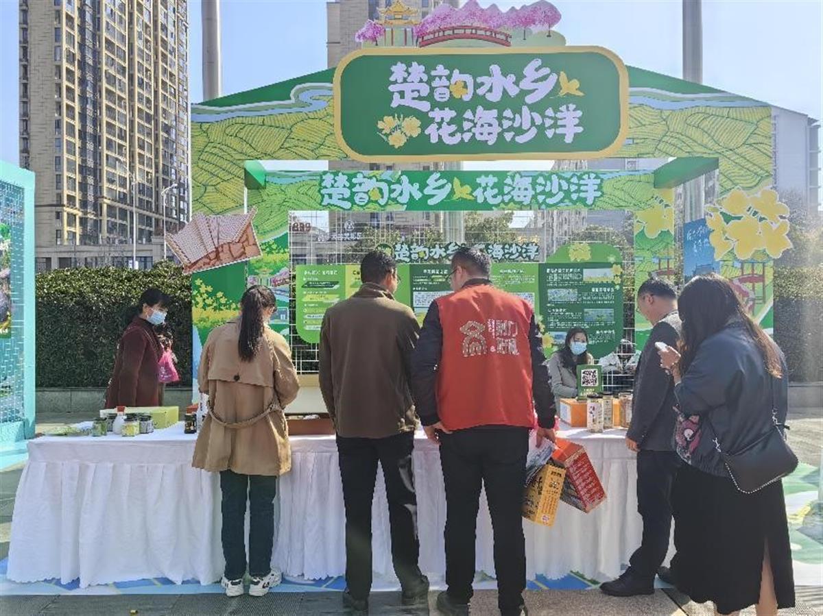 在荆门县市区展区,“楚韵水乡 花海沙洋”“浪漫寿乡 春游钟祥”“山茶花开 一见倾心”“人文东宝 花开四季”“多彩掇刀 璀璨花博”“淼淼花香 在河之漳”“三TAO寻春来 花漾屈家岭”等7个展位,各地近100家文旅企业开展文旅商品展示展销和春游活动促销。在旅行社展区,荆门旅游集散中心、海燕旅行社、悠悠然旅行社等6家旅行社现场推出12个旅游线路套餐,发放文明旅游、安全出行宣传折页等5000余份,据工作人员介绍,意向参团游客2000余人。