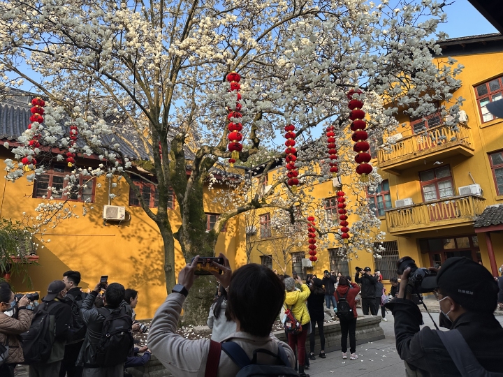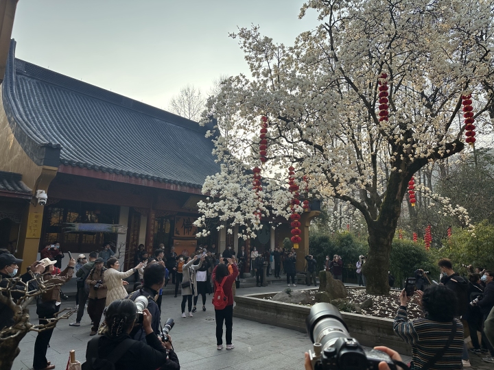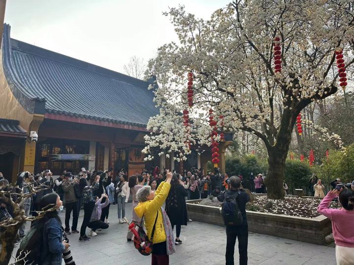 今天(3月9日)一早,网友sea就给潮新闻报料了,他起个大早赶去法喜寺拍网红玉兰,没想到他到的时候,已经有很多人在了:“今日7点不到,就很多人了,大家都是去拍法喜寺500年的玉兰花的,花进入全开最佳观赏期了,真的是好看,我感觉杭州半个摄影圈的爱好者都来了。”