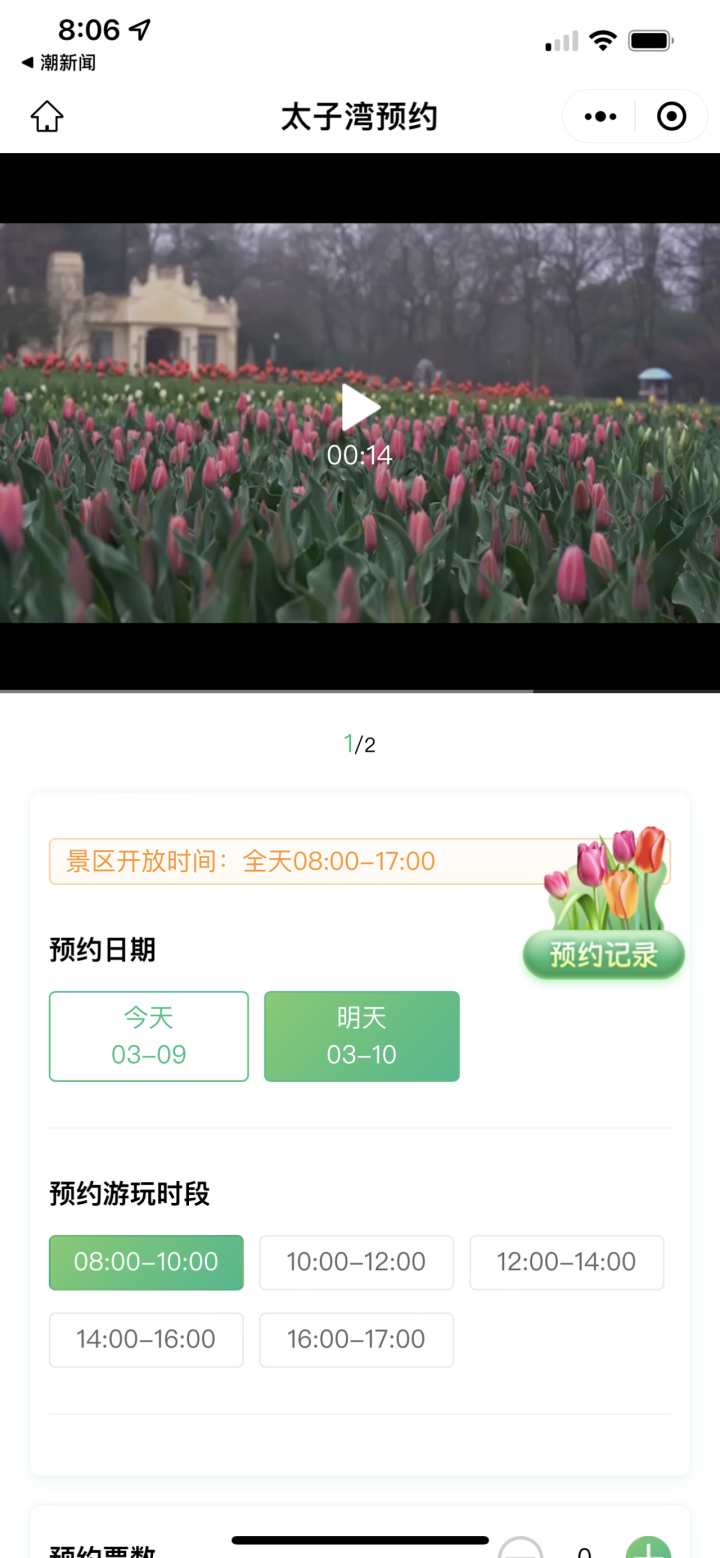 今天早上8点多,潮新闻记者打开“杭州西湖风景名胜区”官方公众号,进行预约,操作很方便。