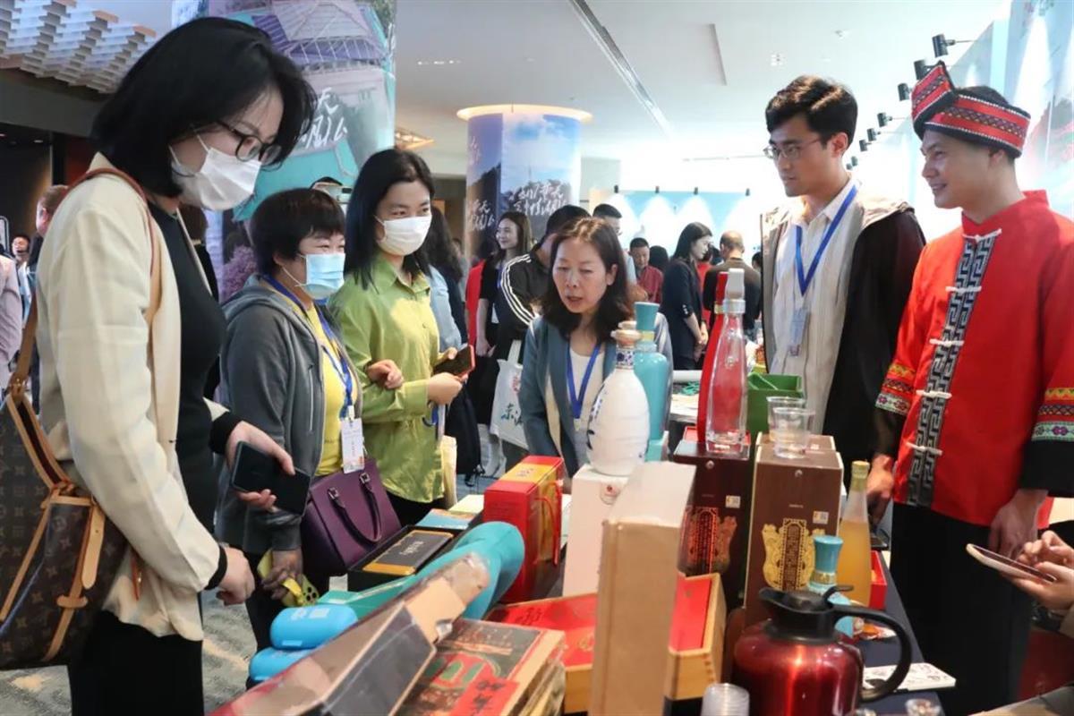 咸宁文旅展示区摆放了琳琅满目的特色文旅产品,丰饶独特的物产引现场嘉宾纷纷侧目,他们对咸宁桂花产品、赤壁青砖茶、黄鹤楼酒、通城九井峰茶等文旅产品,表现出了极大的兴趣。