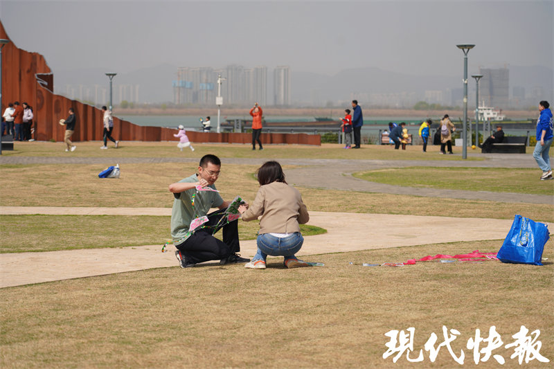 现代快报讯(记者冯茜徐梦云史童歌文/摄)“爸爸,再飞高点”“风来了,快跑起来”……3月,寒意渐渐褪去,初春午时的暖阳下,南京鱼嘴湿地公园游客络绎不绝。露营、野餐、放风筝,人们在这里享受周末惬意时光,体验春日纸鸢乐趣。