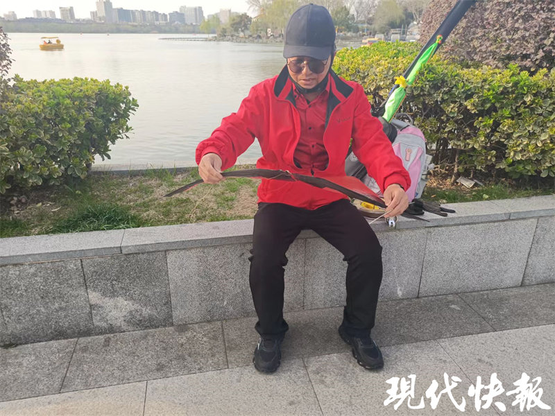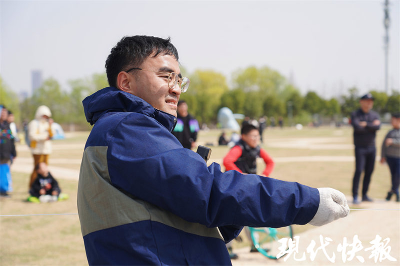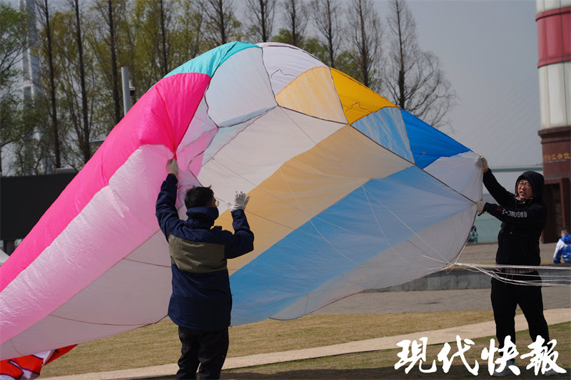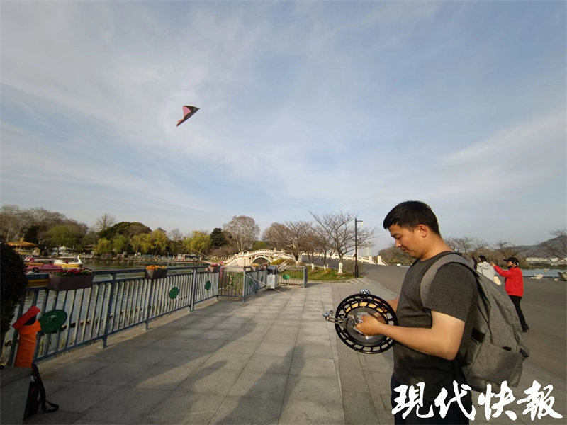 “我是南京人,从小父亲总是带我放风筝。”如今,武冠言在南京的一处航天研究所工作,工作是研究航天科技,爱好是琢磨怎么放非一般的风筝。现在做的关于“飞上天空”一切,他表示都源于父亲的影响。现在35岁的他,周末时经常将自己设计的风筝带到南京的各个适飞点。“我查了鱼嘴今天大约是3级风,是适合放风筝的好日子。”春日的暖风吹起五个大风筝,成为不少游客的打卡点。