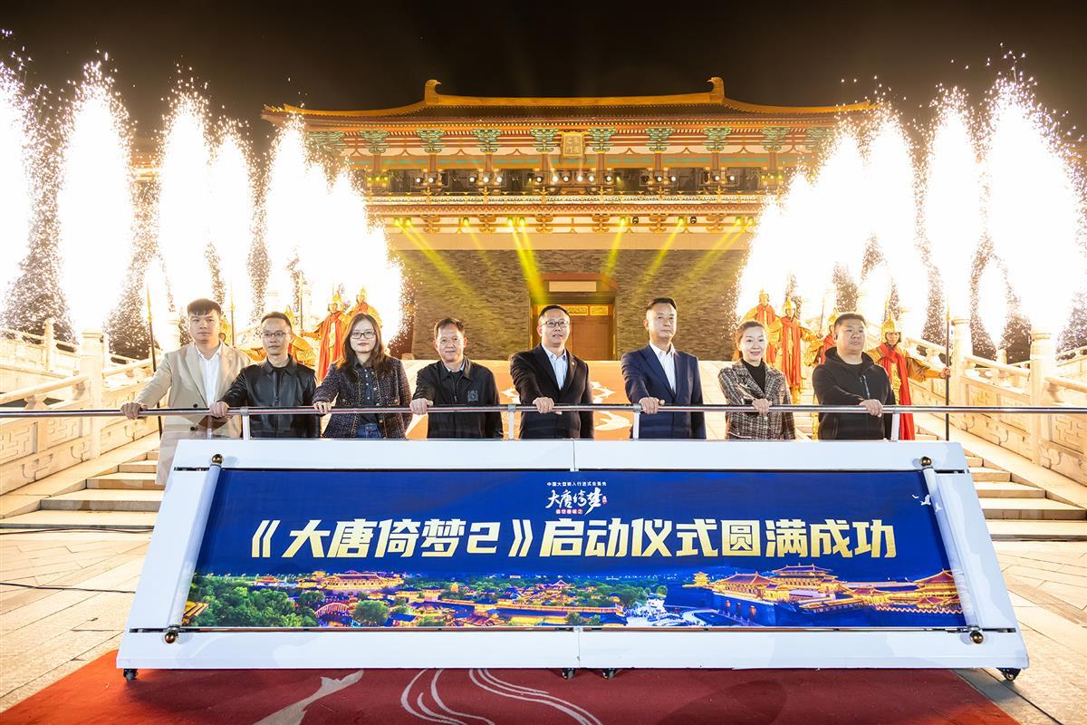 当晚7点,随着光影卷轴的缓缓展开,大型嵌入行进式全景秀《盛世唐城之大唐倚梦2》首秀启动仪式在唐城盛大举行,一场流动的视觉盛宴拉开了帷幕。该演出依托近40万平米的华丽建筑为全景舞台,将全天数十场精彩演艺和三大片区、五大主舞台相互融合,浑然一体;在节目编排上,打破常规演艺思维,颠覆传统表演形式,以“寻千年之恋、观盛世唐城、展华夏雄风、承复兴之梦”为主线,开放性线路、多点式观看,采用先进的声、光、电融合技术,呈现出一幅大唐盛世的宏伟画卷。