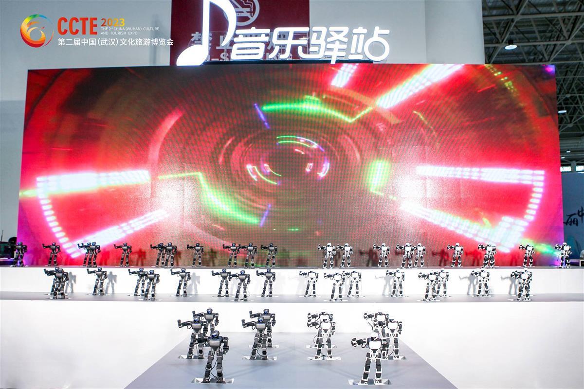 此外,展馆内还设置了“民歌民谣”“动感国潮”“国风雅乐”音乐驿站,通过特色民歌与都市民谣交替演出,机器人跳国风舞蹈,以及琴、箫、笛、琵琶演奏古典乐风等方式,为观众呈现多种形式、不同风格的音乐作品,带来全新的视听感受。多个演出活动掀起阵阵热潮,鲜明突出了本届文旅博览会的“音乐”特色。(图片由艾毅、胡琳婉提供)