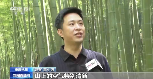 游客李小波:山上的空气特别清新,平时也是大城市比较喧嚣的环境里面,带着家人一起来运动运动,增强体魄。