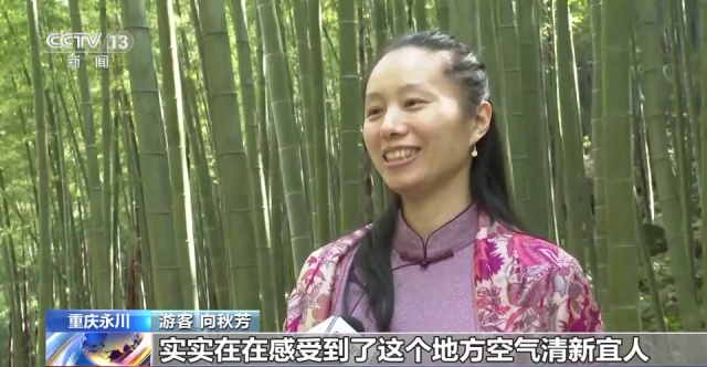 游客向秋芳:实实在在感受到了这个地方空气清新宜人,环境特别优美,确实感觉到心旷神怡,来了就想在这多待一阵,都有一种就是不舍得离开的感觉,流连忘返。