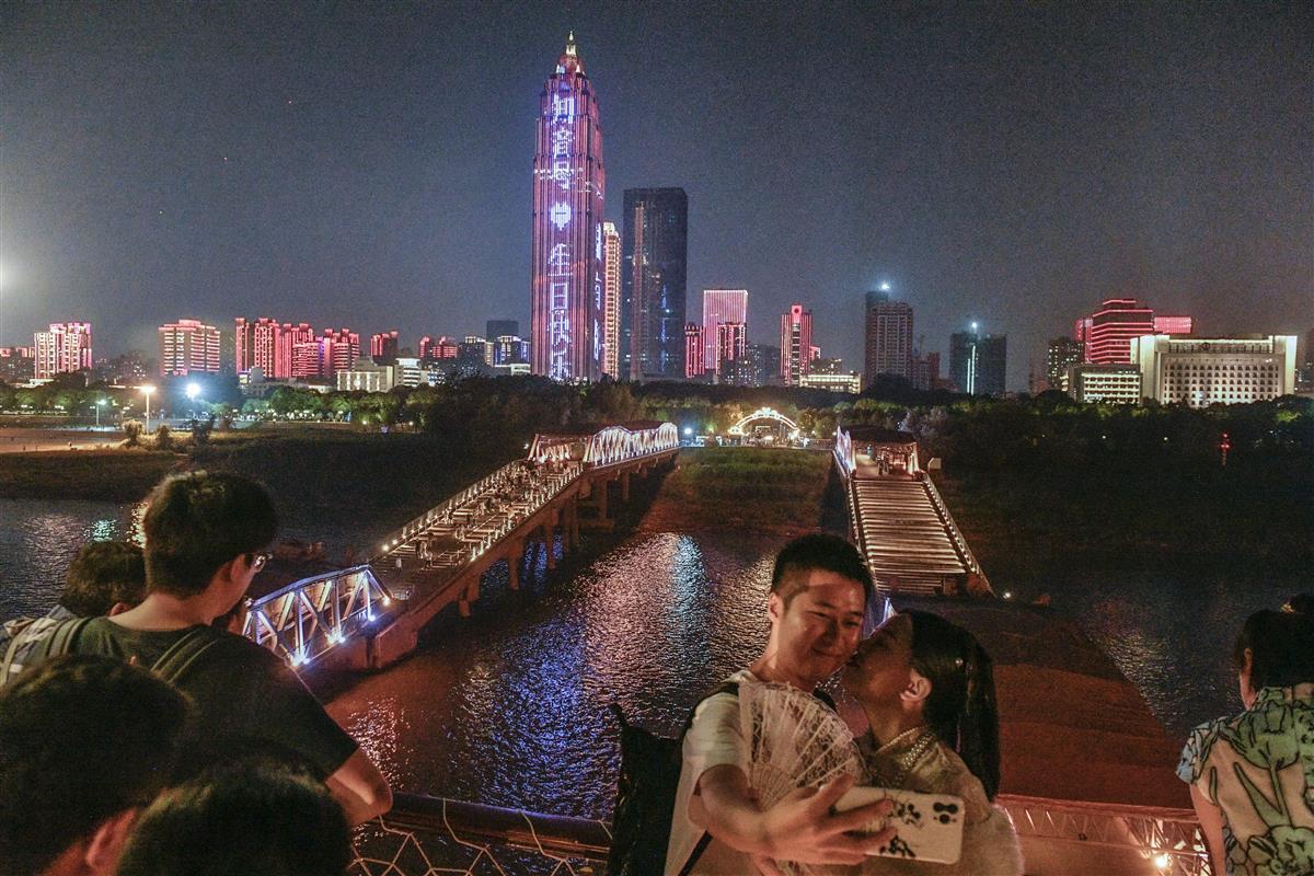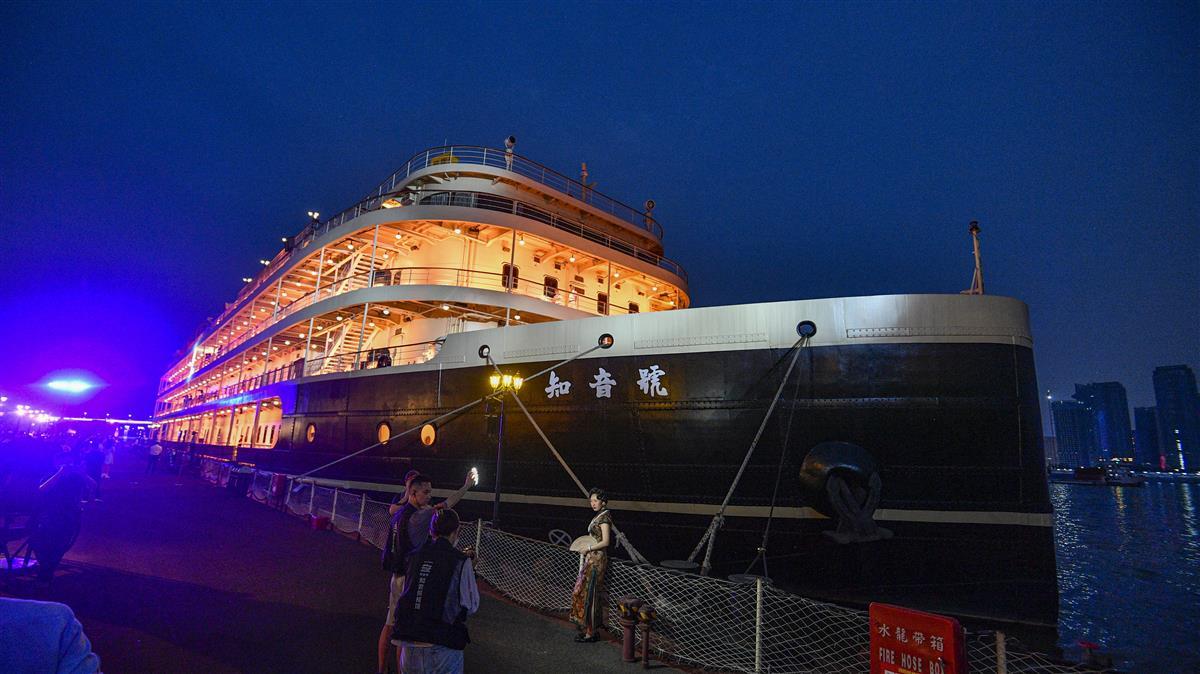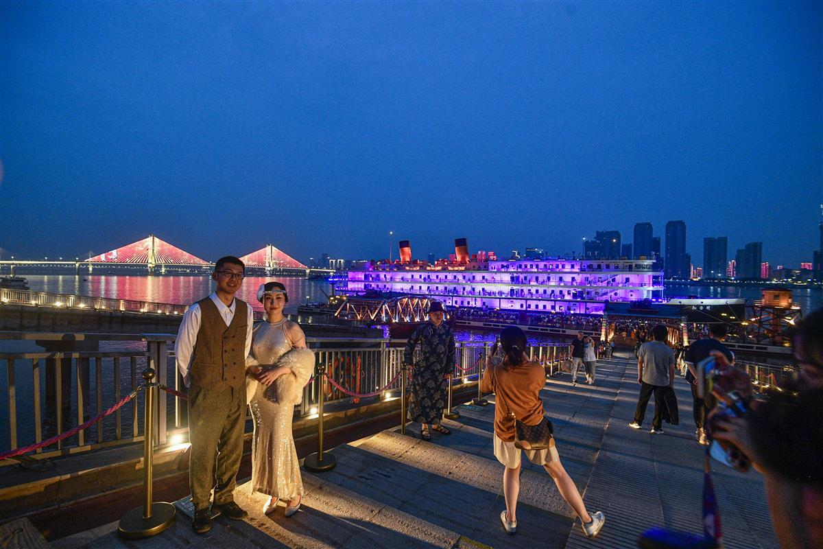 当晚,长江两岸,万千灯火点亮天幕;江水之上,华灯璀璨的知音号与灯光秀相映成趣。伴着复古的音乐,盛装打扮的游客们相继入场,优雅旗袍、传统汉服、璀璨礼服、帅气西装……满满的仪式感,让知音号的这场生日庆典格外与众不同。