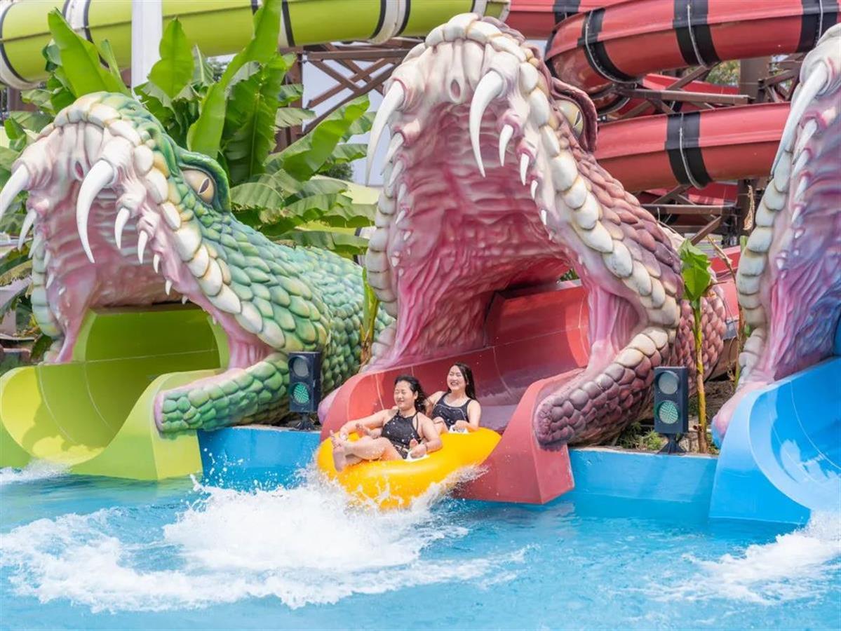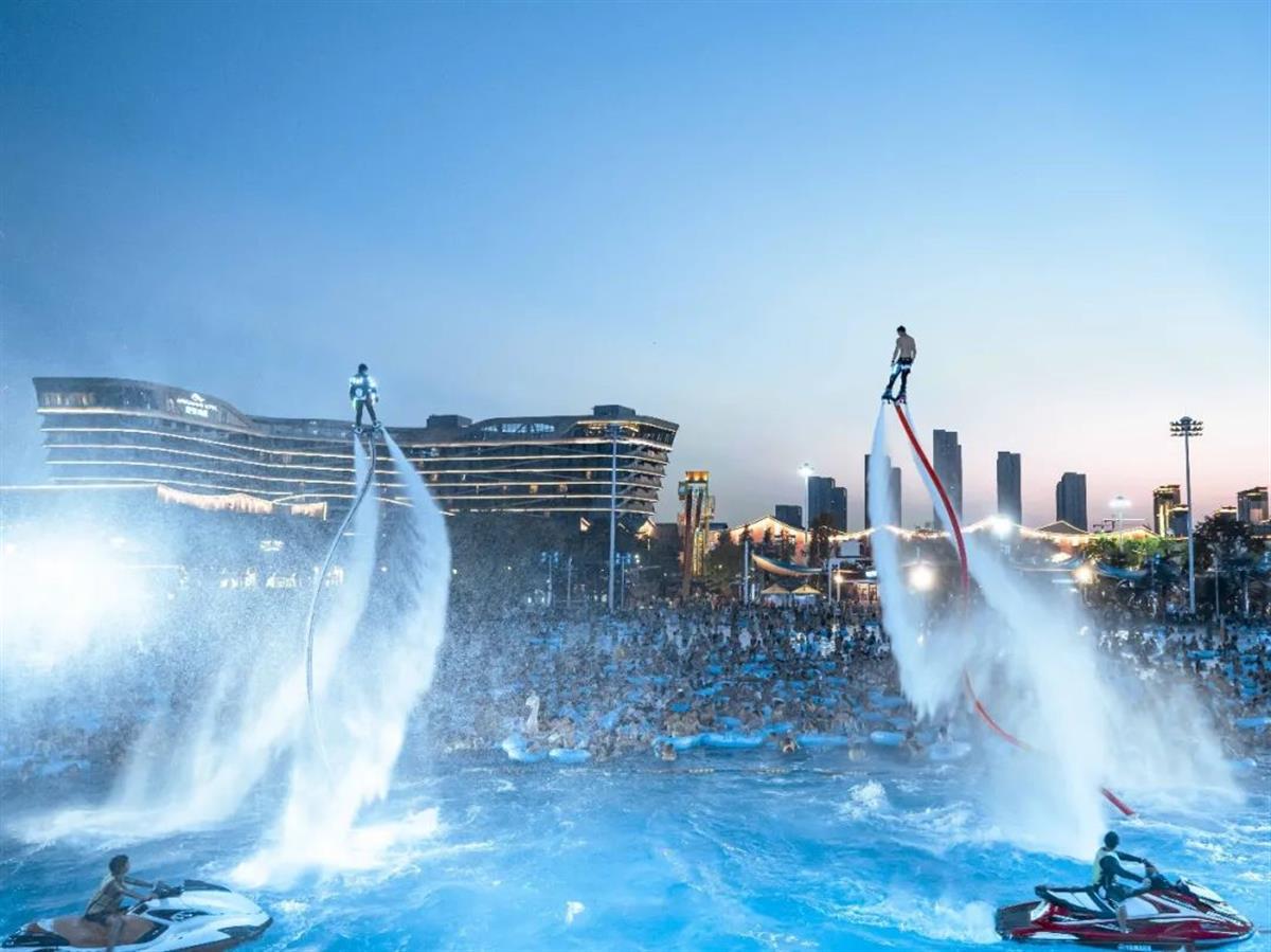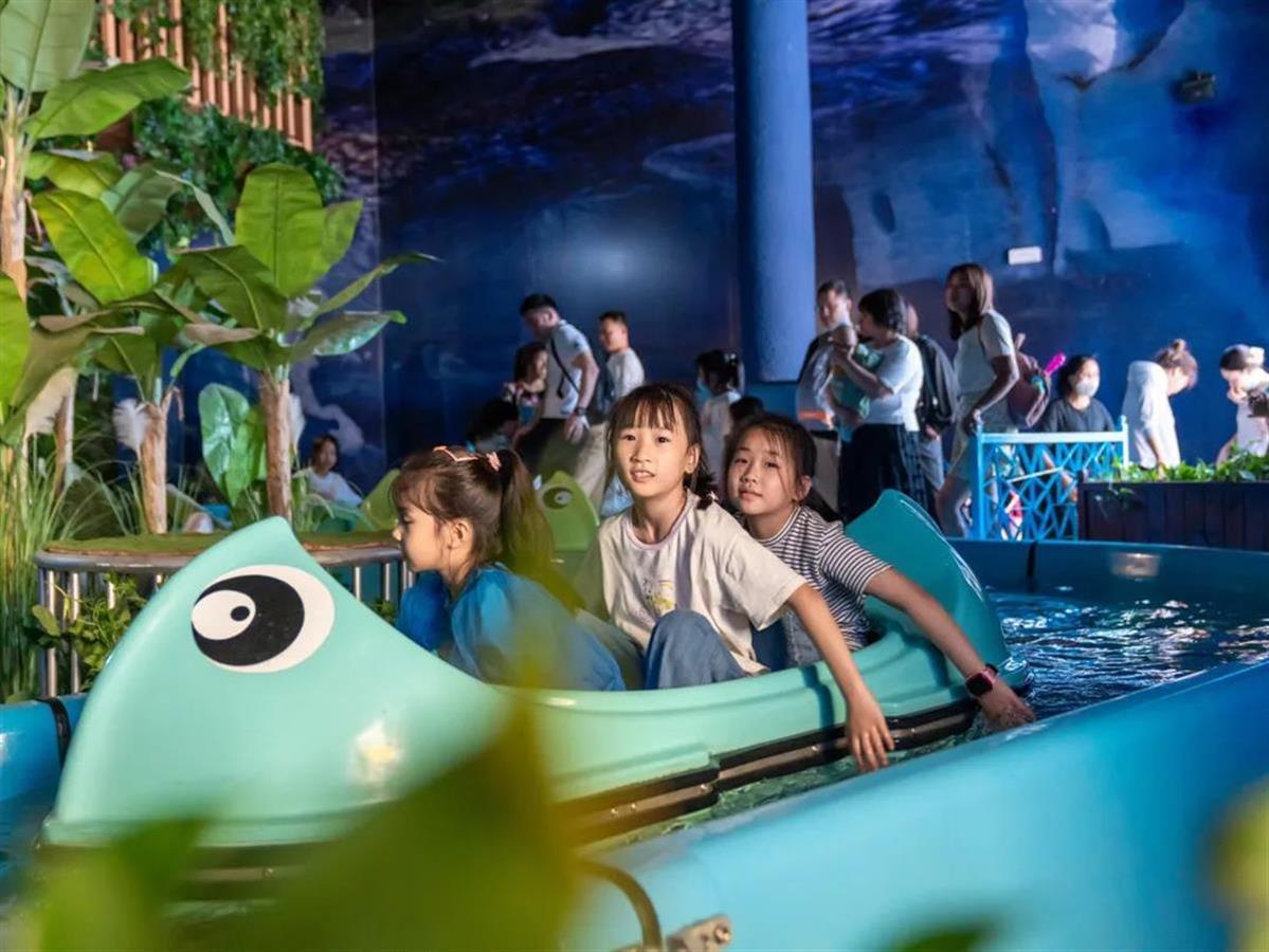 同时,游客可以挑战“涡轮飞梭”、冲刺“鲲鹏风暴”,感受乘风破浪般的体验;在“机械水寨”“发现号”“逐浪湾”,亲子嬉戏体验夏日清凉。