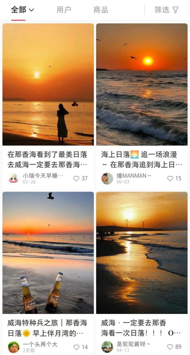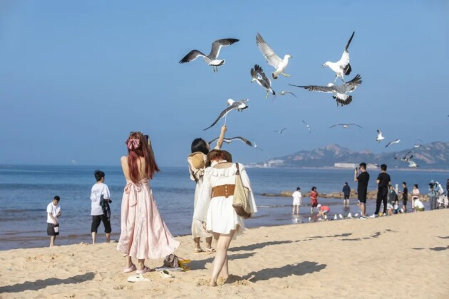 海风轻拂、踩沙踏浪,也是出行游玩的一大降暑选择。威海的海水浴场可谓绝色,是您一定要来逛一逛的。尤其是夕阳西下、烈日渐消时,金色的落日余晖沿着大海的轮廓延伸开来,站在沙滩上远远眺望,那景致真的令人目眩神迷,想要体验海滨风景的小伙伴们万万不可错过。
