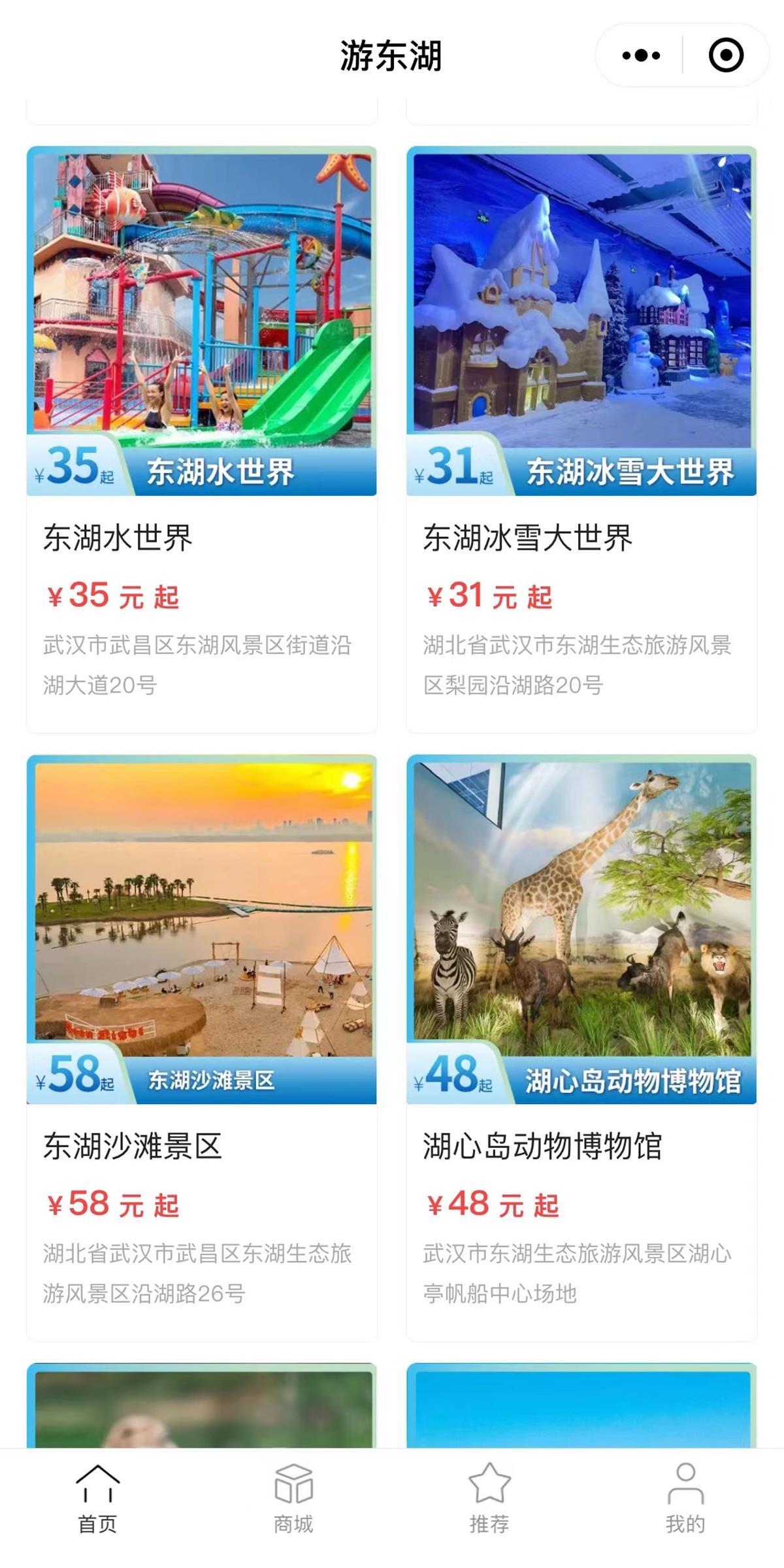 极目新闻记者日前从武汉东湖文旅集团获悉,广大游客关注“游东湖”微信公众号或直接进入“游东湖”小程序,即可进行东湖热门景点和景区交通的预约购票。在小程序中,游客可以轻松购买东湖游船、东湖海洋乐园、东湖观光氦气球、东湖帆船、东湖沙滩、东湖之眼等景点的门票,小程序中特别推荐了多种景点的优惠套票,让游客享受更多折扣优惠。