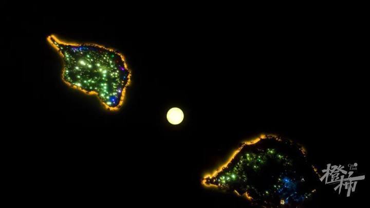 夜幕笼罩之下,月光岛的浪漫气质在灯光亮起的一瞬间姗姗而起。
