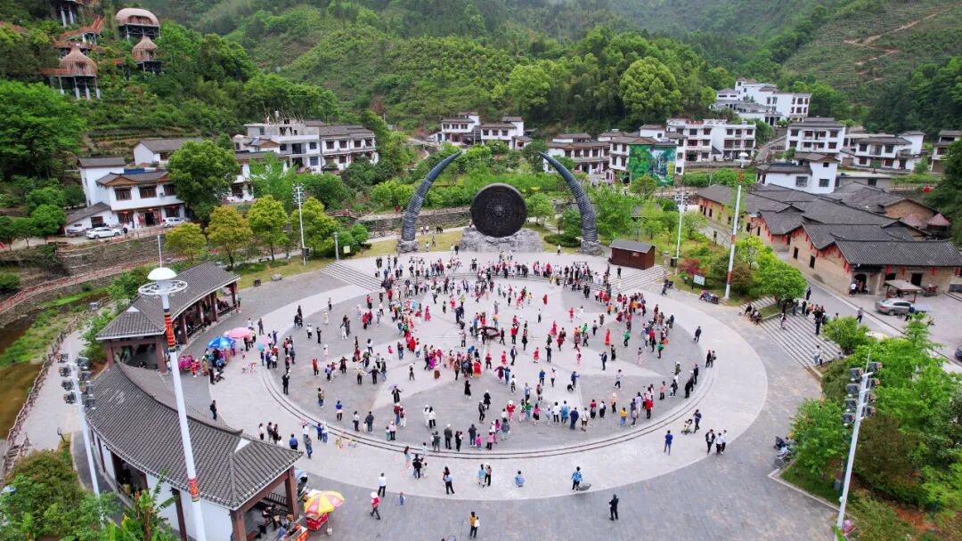 瑶望千年,只为等你。在瑶望千年广场上矗立有一面直径6.5米的硕大铜鼓,又叫芒锣,卷边。铜鼓中央有一拳头大小的凸点,是瑶民集会、大型节日祭祀、庆典的响器,常与牛角号配合使用。