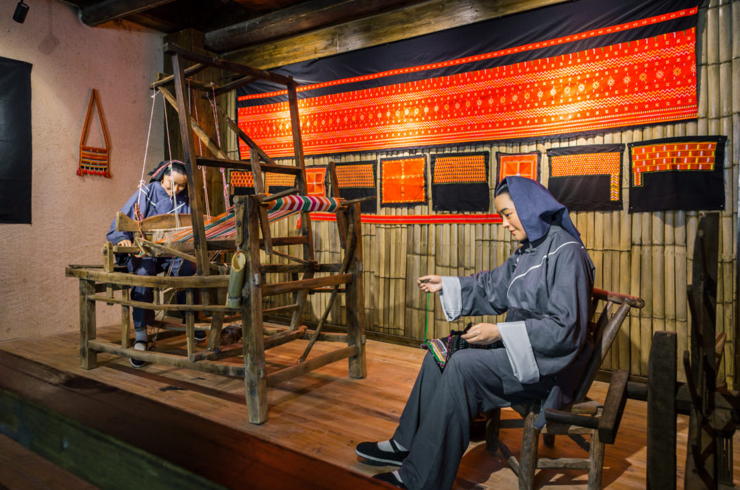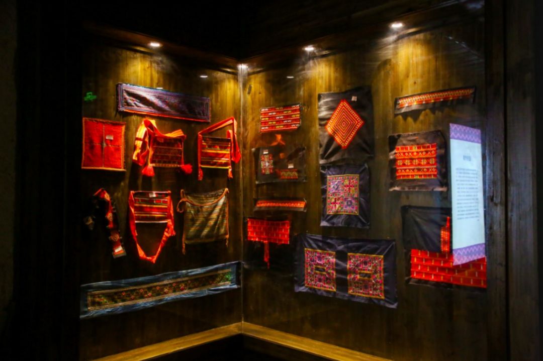陈列馆内展示有瑶乡发源、盘祖传说、瑶民变迁、盘王塑像、犬首图案神台、瑶族图腾,以及古瑶村的史实、县志、府志、族谱等历史证据,和千家峒古遗址的垒石文化地名图案、古瑶民的生活用品、捕猎器具等。