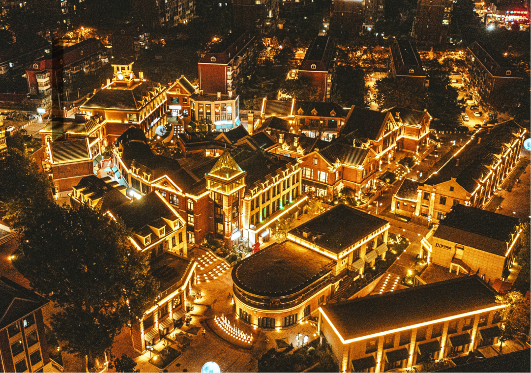 以青黛砖瓦的战汉风格建筑群为主体原型