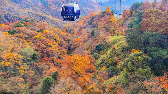 秋天的光雾山如梦似幻,漫山红叶从山顶蔓延开来,宛若流水。漫步在天然画廊,道路两旁铺满了红叶,层林尽染的自然风光让游客们流连忘返。行驶在环山公路上,五颜六色的红叶与蓝天白云交相辉映,构成了一幅绝美的画卷。