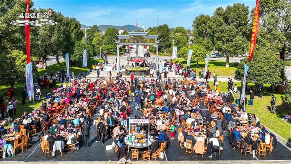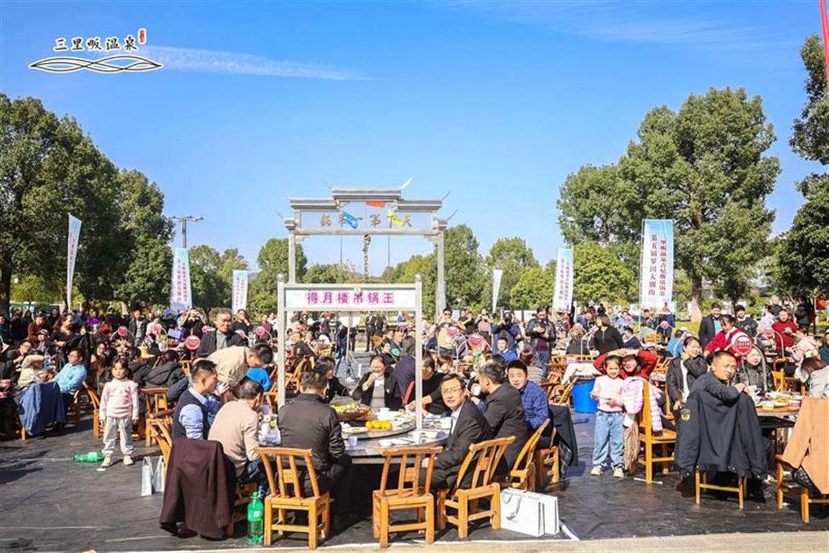 俗话说“冬日进补,来年打虎”,2023年11月18日,第五届罗田三里畈温泉吉尼斯吊锅节在罗田三里畈温泉盛大举行,来自武汉、黄冈、安徽的游客齐聚三里畈温泉,吃吊锅,品甜柿,泡温泉。