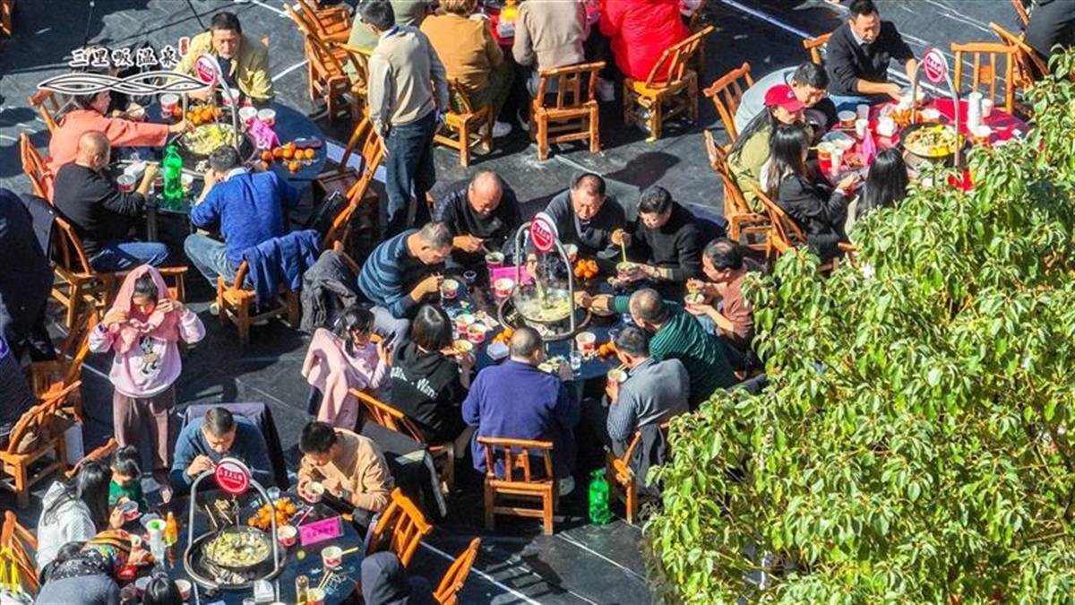 “品尝了罗田吊锅,看了节目表演,下午再去泡个温泉,全身暖烘烘的,一天行程安排得充实又不累。”当天从安徽来三里畈泡温泉的王女士感叹道。景区还设有性价比高、关爱游客的“一元吊锅”活动,现场设有投币箱,游客可以选择投币一元钱或扫码支付。