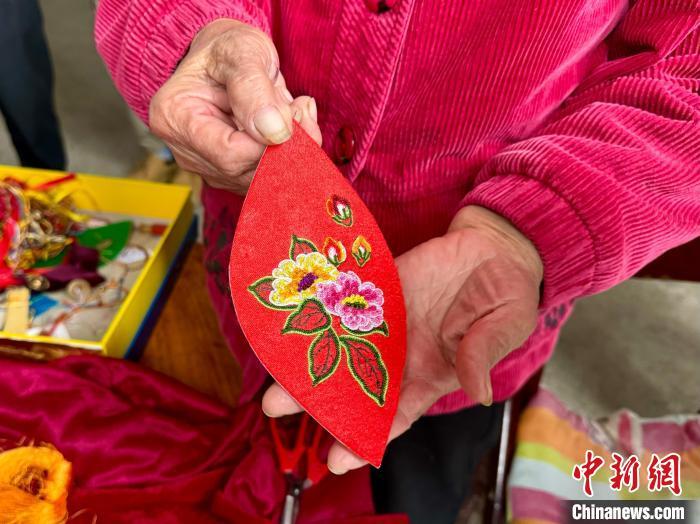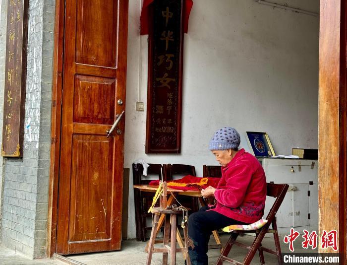 黄肖琴被誉为“中华巧女”,图为黄肖琴在绣片上绣制的精美图案。林洁琪摄