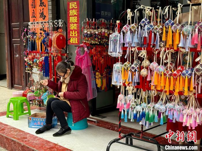 12月1日,走进广西靖西市新靖镇旧州街,随处可见绣球元素,家家户户都会制作绣球,并把绣球挂在门口销售。旧州有上千年的历史,以制作传统工艺品绣球而闻名,有着“中国绣球之乡”的美称。旧州景区壮族风情浓郁,有文昌阁、绣球风情街等景观,每年吸引大量游客前来观光。