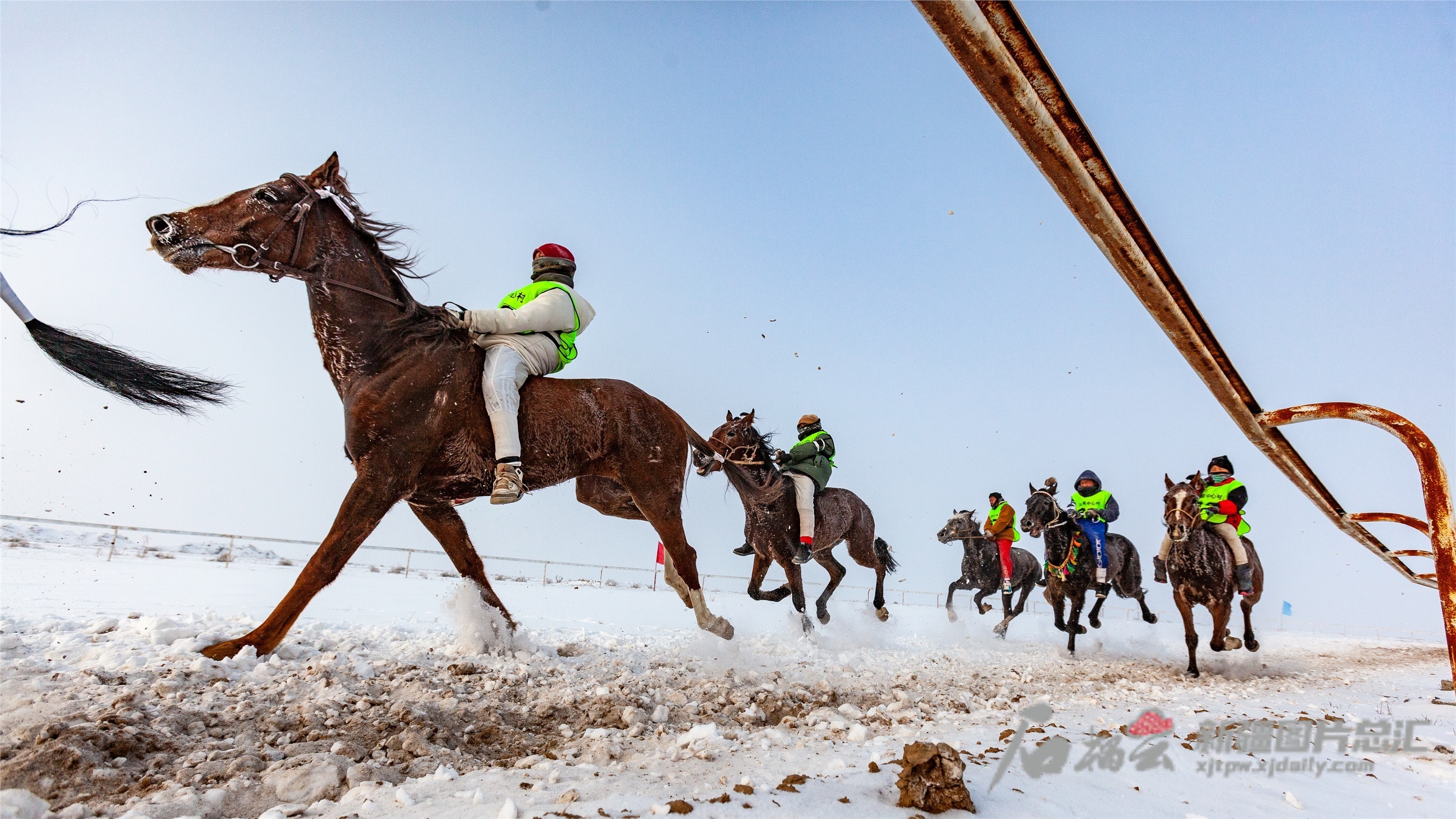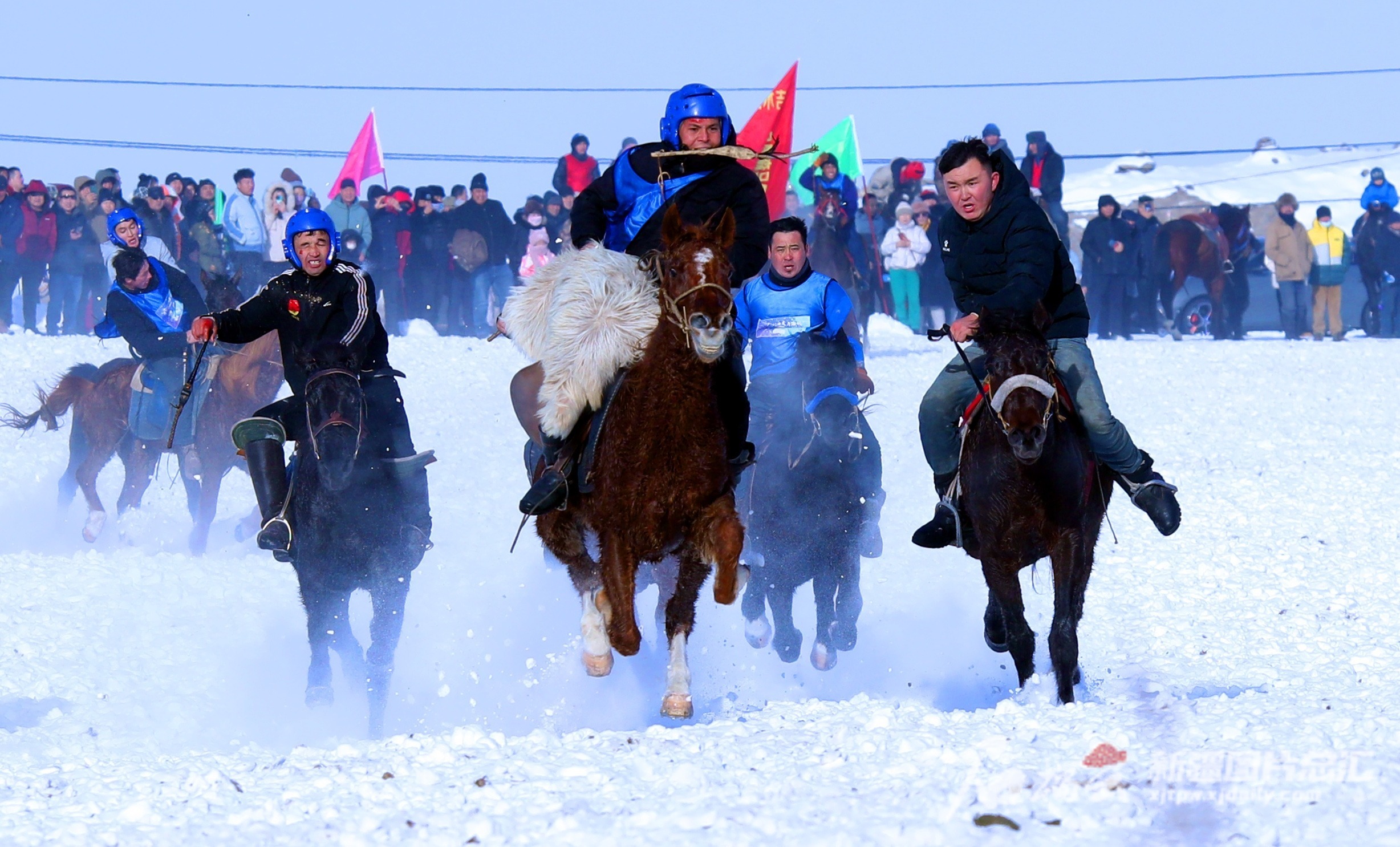 12月23日,阜康市三工河乡大泉中心村的赛马比赛吸引了来自全疆各地的骑手前来参赛。张昀摄