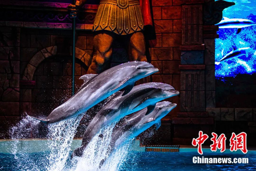波塞冬旅游度假区的海豚正在表演。刘锡菊摄