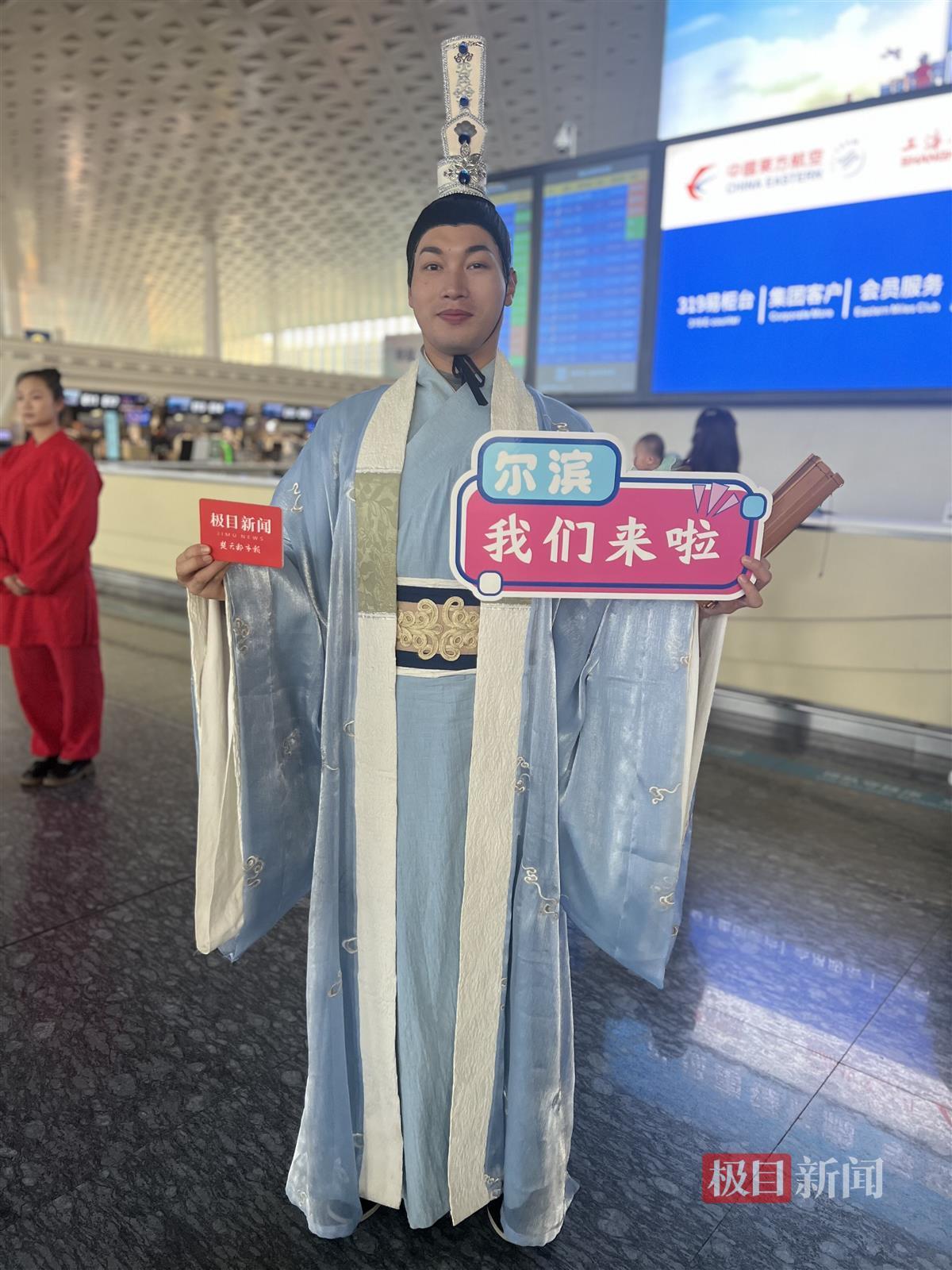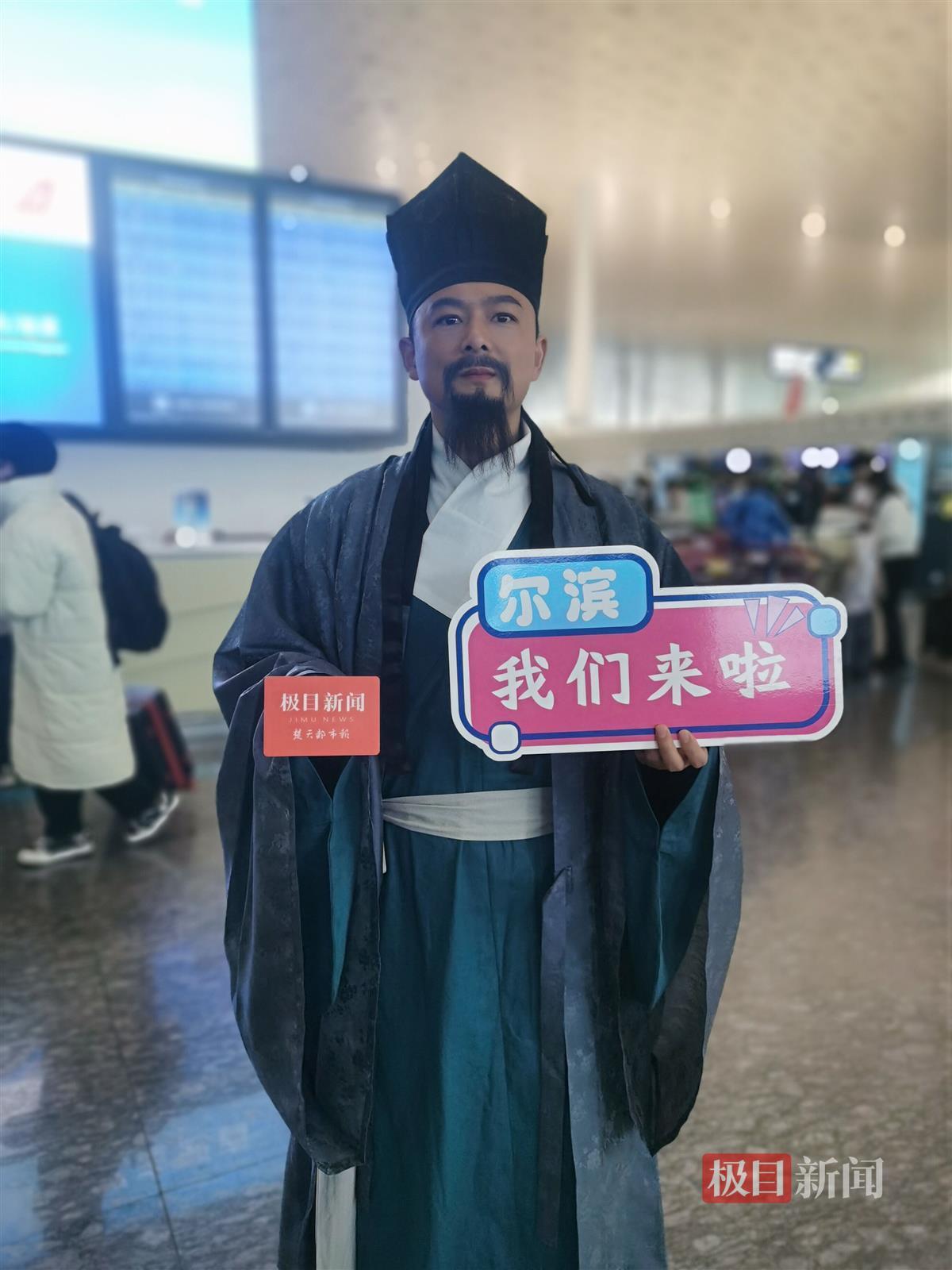 “路漫漫其修远兮,吾将上下而求索。”上午7时30分,屈原故里景区青年屈原的扮演者、屈原传说的谭竹青在天河机场内念起他的台词,谭竹青说:“我非常高兴代表湖北秭归前往哈尔滨,展示屈原的形象。”