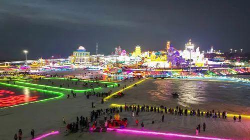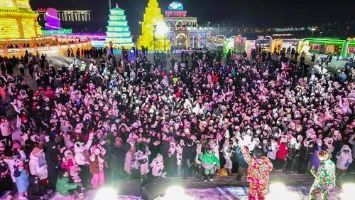 游客郑紫瑶爬上了高高的瞭望塔,俯瞰园区的同时,拍下了一张夜景照片。照片中,偌大的园区里到处都是游人,玩滑梯的、蹦迪的、拍照的、赏冰灯的……长春冰雪新天地内可谓是游人如织、精彩纷呈。13日17时许,一群游客跳起了“科目三”引来围观,一些年轻人还跟着跳起来;17时30分,园区内的大舞台上,主持人领着大家一起互动表演、蹦迪,6名身着民族服饰的云南玉溪游客还带来了走秀表演;当晚的烟花秀更是将喧嚣的夜推向高潮,游客们在浪漫中共同狂欢,热情的呐喊声划破夜空。