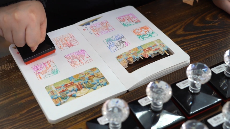 这家小店的老板还设计了多枚套彩印章,丰富的色彩与元素为游客送上满满的祝福。