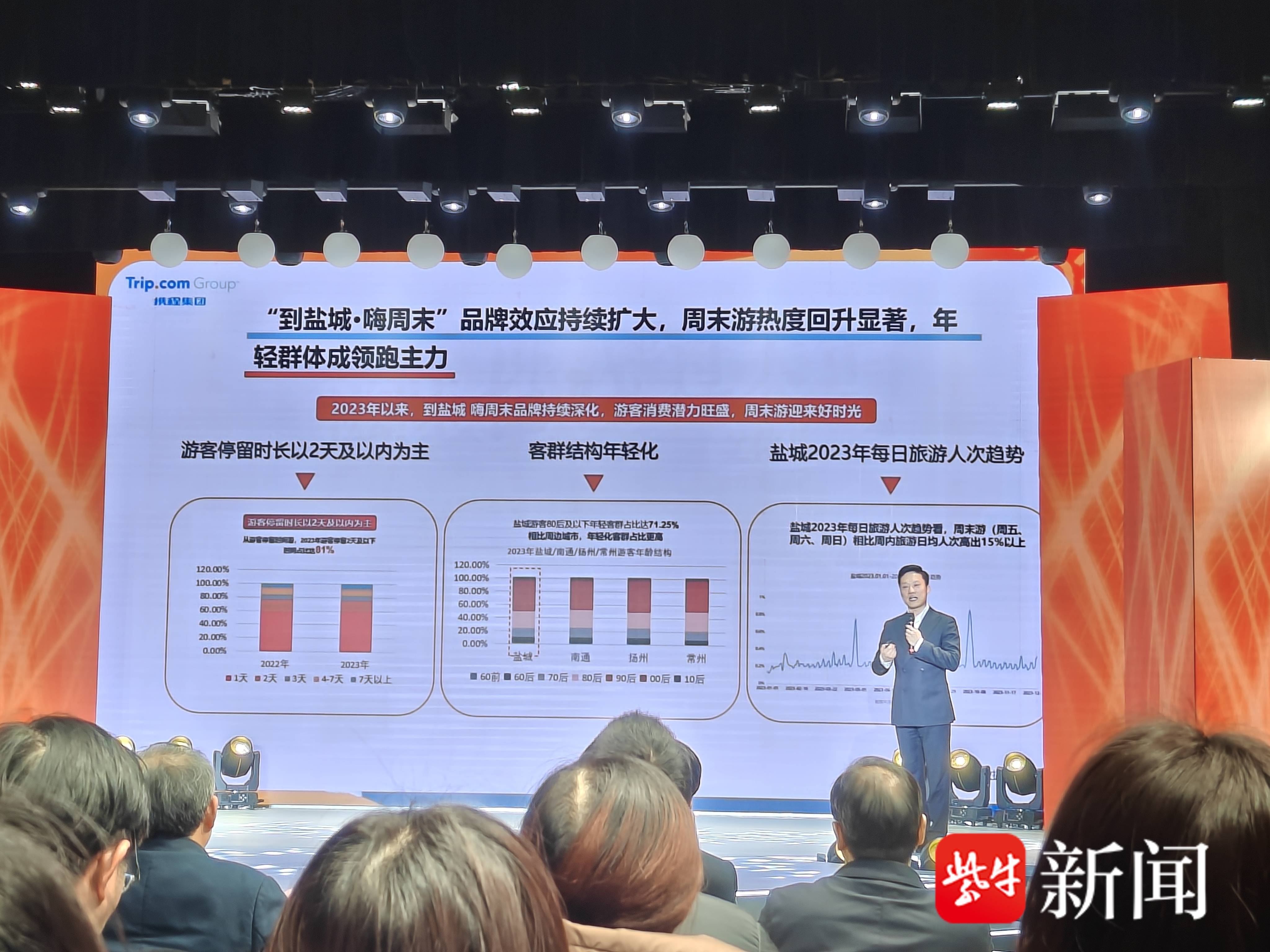 紫牛新闻记者注意到,携程负责人现场发布的该平台2023年盐城旅游数据显示,去年盐城异地游客数量增长45.2%,主要客源地来源于上海、山东、浙江等地。“我们发现更多的年轻人打卡盐城,成为外地来盐城旅游的主力军。”携程集团政府合作部华东大区负责人费成诚介绍,2023年盐城市酒店间夜量(房间出租率单位)对比2019年增长189%,增长率位列江苏省第二名,仅次于南京市。