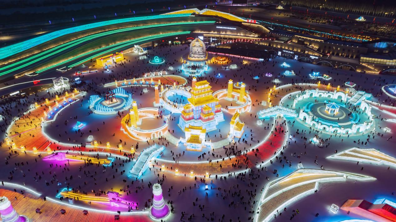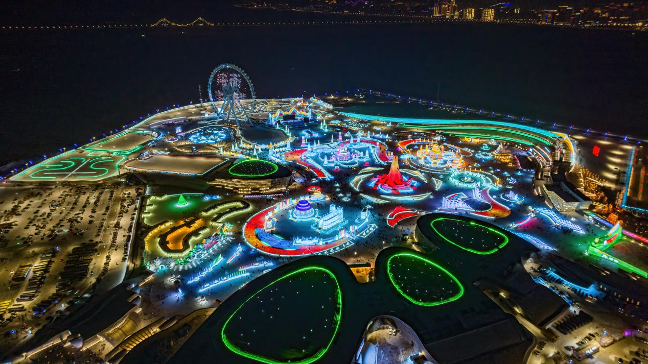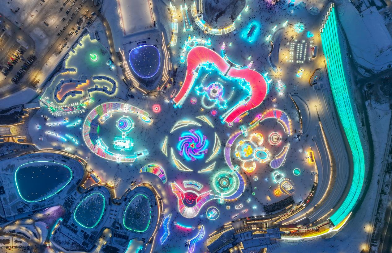 第二十五届哈尔滨冰雪大世界应用先进技术,借助“5G户外照明管理云平台”,打造多元化、沉浸式的冰雪景观灯光效果。