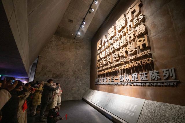 1月25日,在侵华日军第七三一部队罪证陈列馆,游客参观用六种语言写的“反人类暴行”墙。新华社记者 谢剑飞 摄
