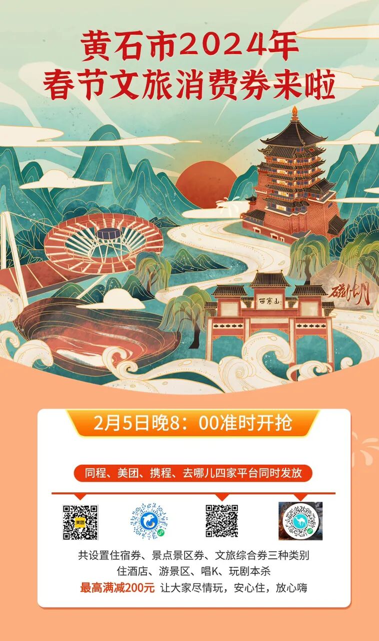 本次领券,可在“文旅黄石”微信公众号后台领取